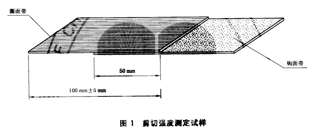 參照剪切強(qiáng)度試樣制備方法,但在粘合時(shí)將鉤面帶和圈面帶的一端對齊,再輕輕壓合,并使其有效長度為50mm。