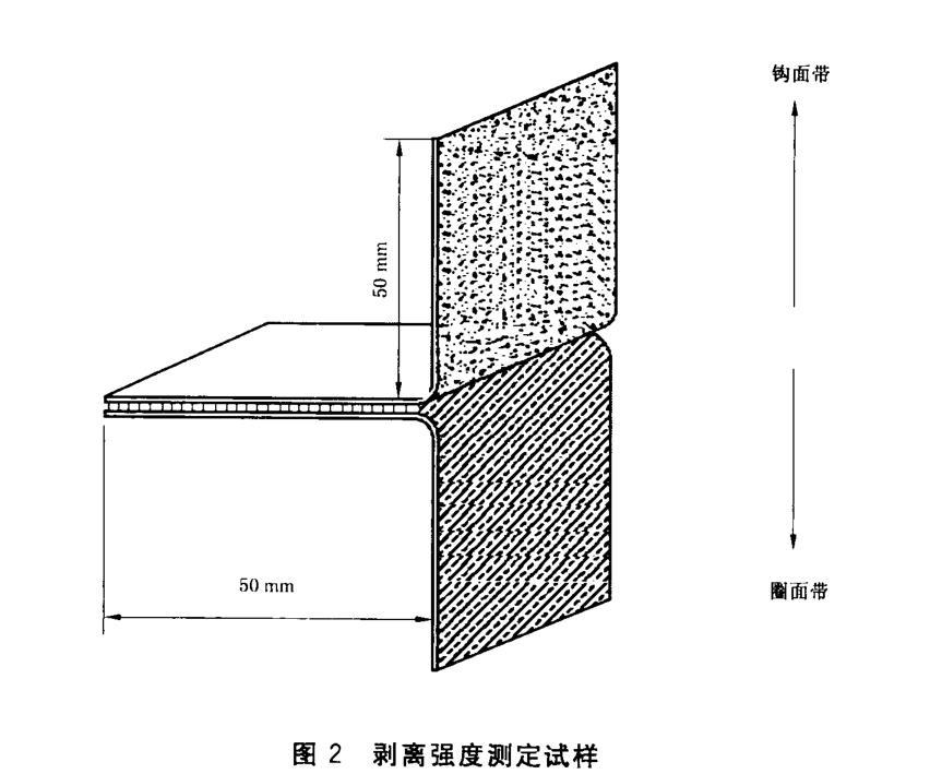 剝離強(qiáng)度是在規(guī)定的試驗(yàn)條件下,將粘扣帶有效閉合區(qū)域從開口一端剝離分開每單位有效寬度所需要的力。